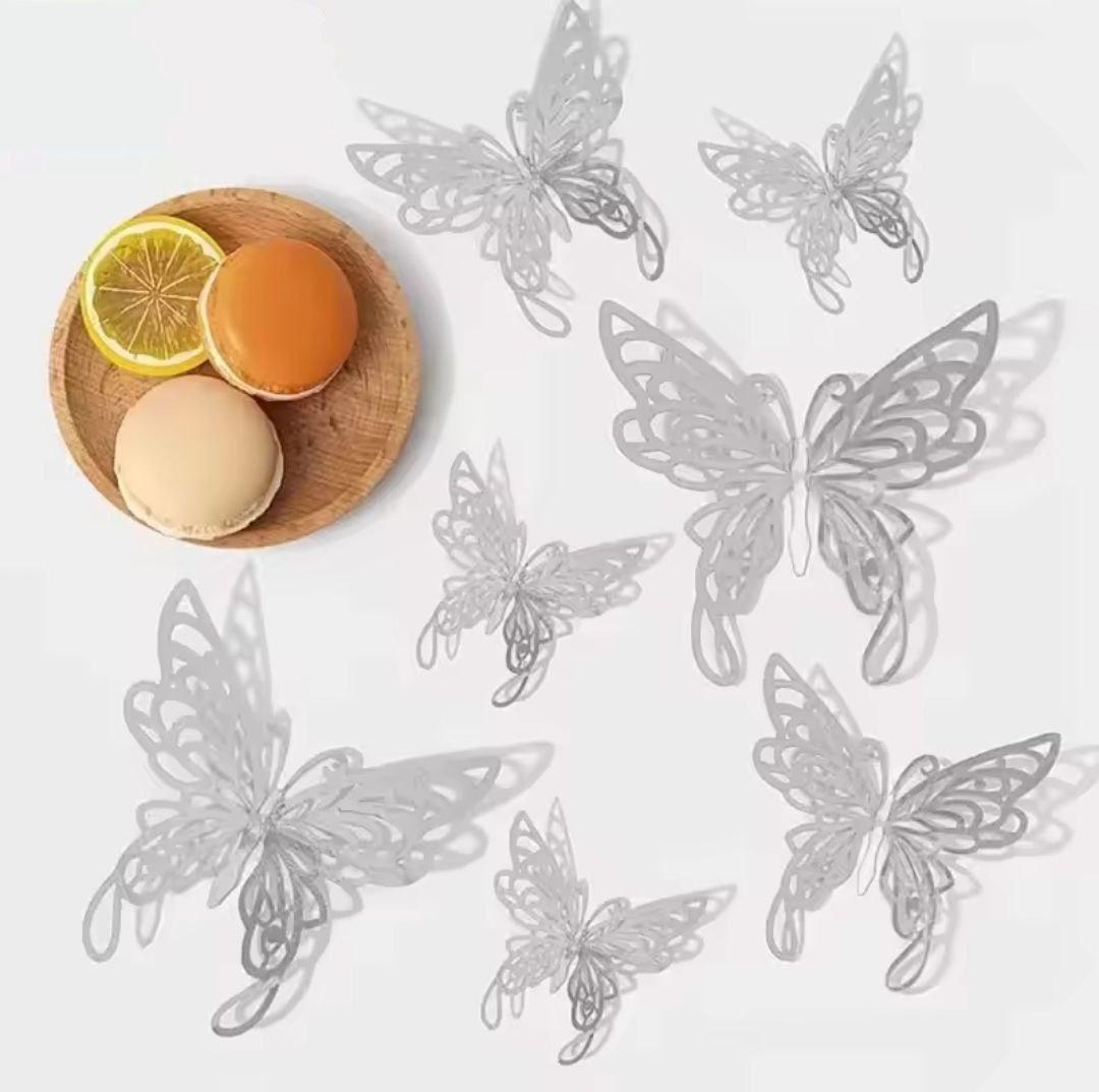 3D-наклейки метелика срібло 12штук набір JJ319-E